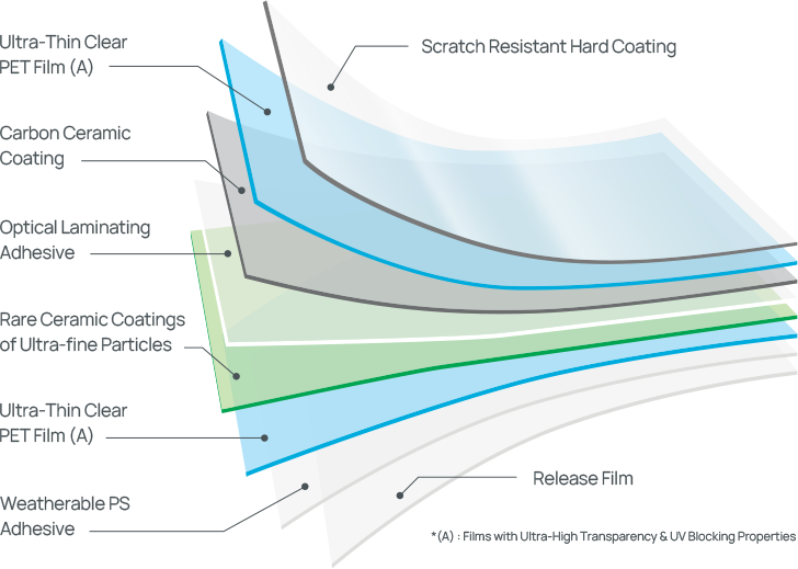 ‘CERAMIC ST’ window tint film reduces glairiness and fatigue from the internal reflection which is a weak point of general function window films, provides the best visibility even at night as well as during a day, and blocks ultraviolet rays at almost 100% regardless of film penetration rate. In addition, ‘Dark-black’ color of Lover enhances the value of cars with dignified style.